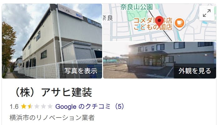 ㈱アサヒ建装のGoogle口コミには星4つの口コミが1件寄せられていました。