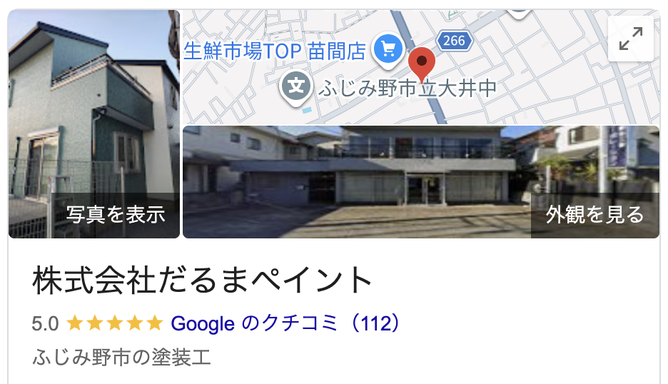 だるまペイントでは、上記のような高評価の口コミが寄せられており、Google口コミでは平均星5.0と高評価の結果でした。