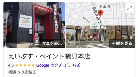 えいぶすペイントのGoogle口コミには星5つの口コミが数件寄せられていました。