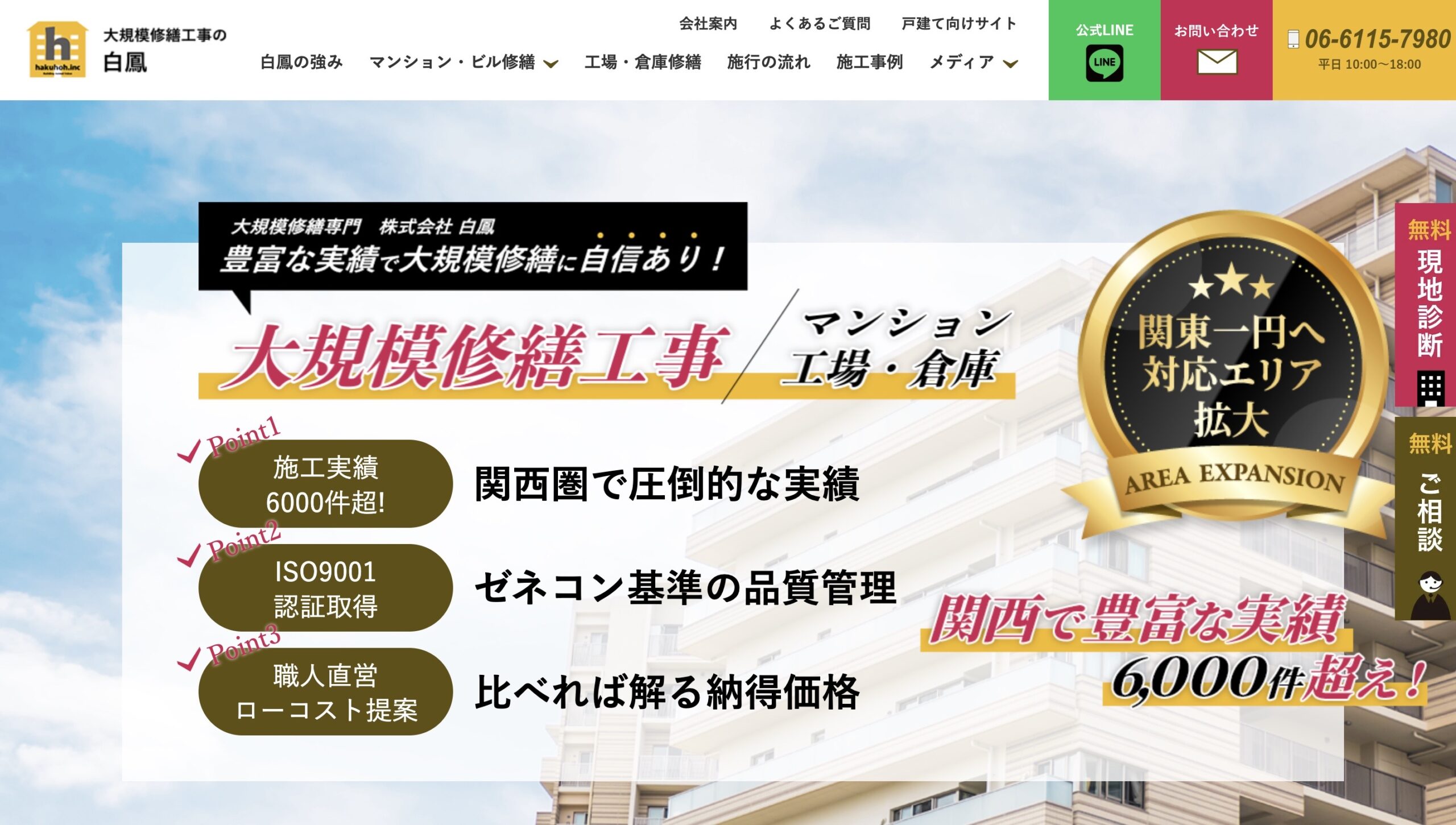 株式会社白鳳は大阪府大阪市を拠点に、ビル・マンション各種お建物の改修工事専門業者です。