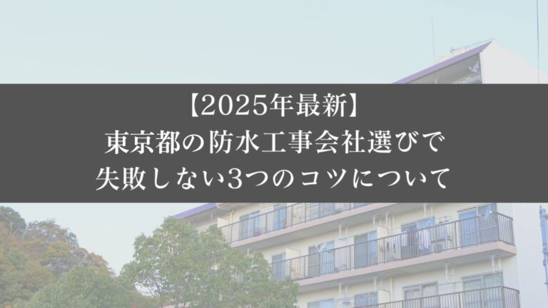 私たち大規模修繕エージェントでは、『【25年最新】東京都の防水工事会社選びで失敗しない3つのコツ』という記事も執筆しております。