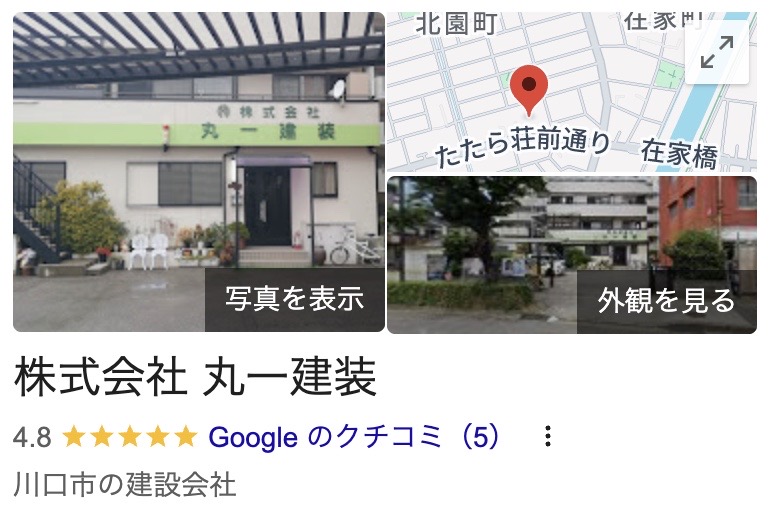 株式会社丸一建装では、上記のような高評価の口コミが寄せられており、Google口コミでは平均星4.8と高評価の結果でした。