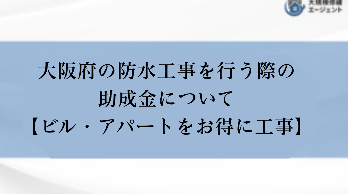 大阪府で防水工事を行う際の助成金・補助金について【ビル・アパートをお得に工事】