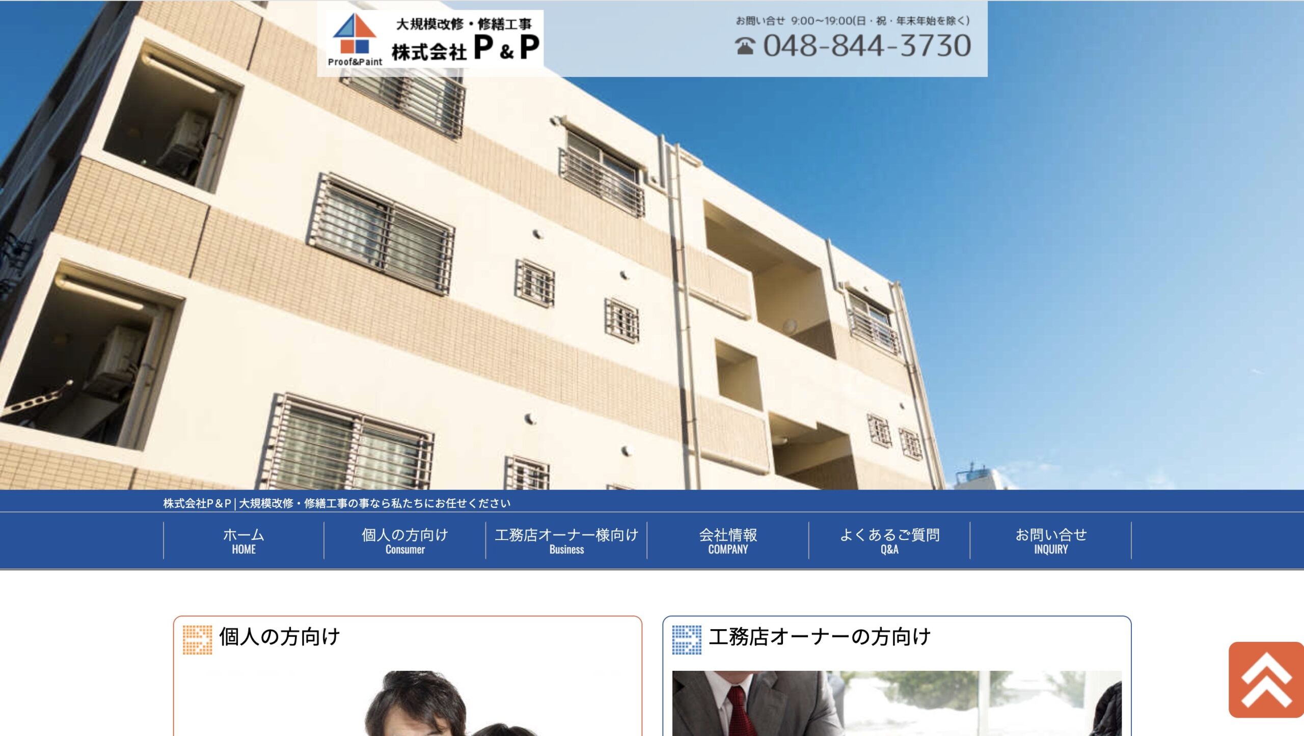 株式会社P&Pは埼玉県さいたま市桜区を拠点に、マンション・ビルなどの大規模修繕工事をはじめ、建物全般の改修・リニューアル工事を手がけている施工業者です。