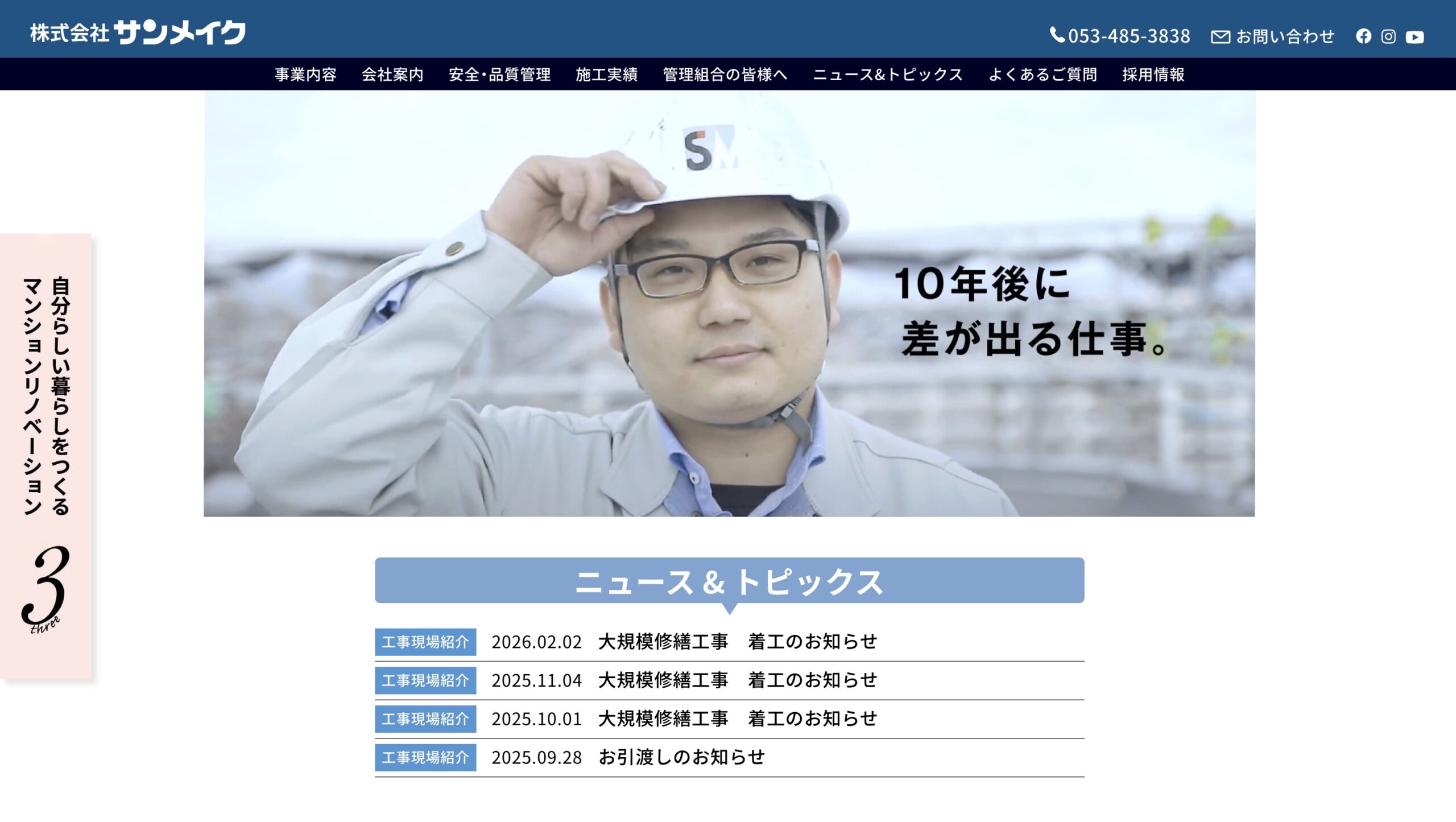 株式会社サンメイクは静岡県浜松市を拠点に、ビル・マンション各種お建物の改修工事専門業者です。
